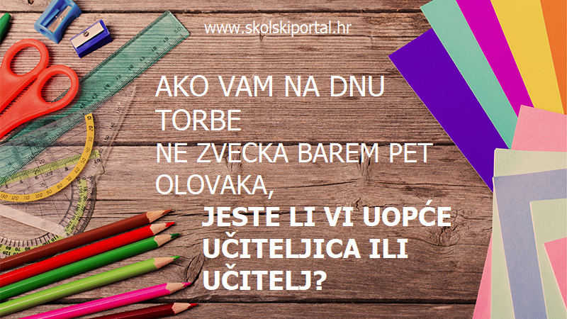 ■ 3. ■ Torba vam je prepuna olovaka, flomastera i penkala. Ako vam na dnu torbe ne zvecka barem pet olovaka, jeste li vi uopće učiteljica ili učitelj? Mogu vam naime zatrebati da napišete kakav popis, riješite križaljku ili napravite plan za idući tjedan; ta kako biste mogli bez njih?!