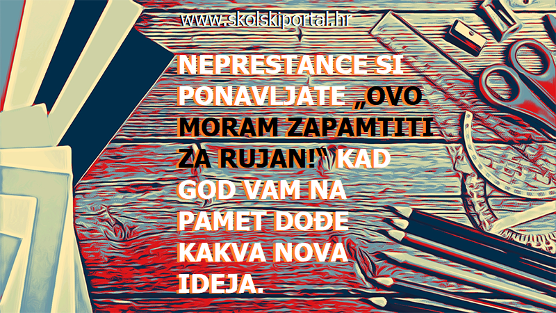 ■ 5. ■ Neprestance si ponavljate „Ovo moram zapamtiti za rujan!“ kad god vam na pamet dođe koja nova ideja. Zašto najbolje ideje padaju na pamet kada uopće nismo u školi?