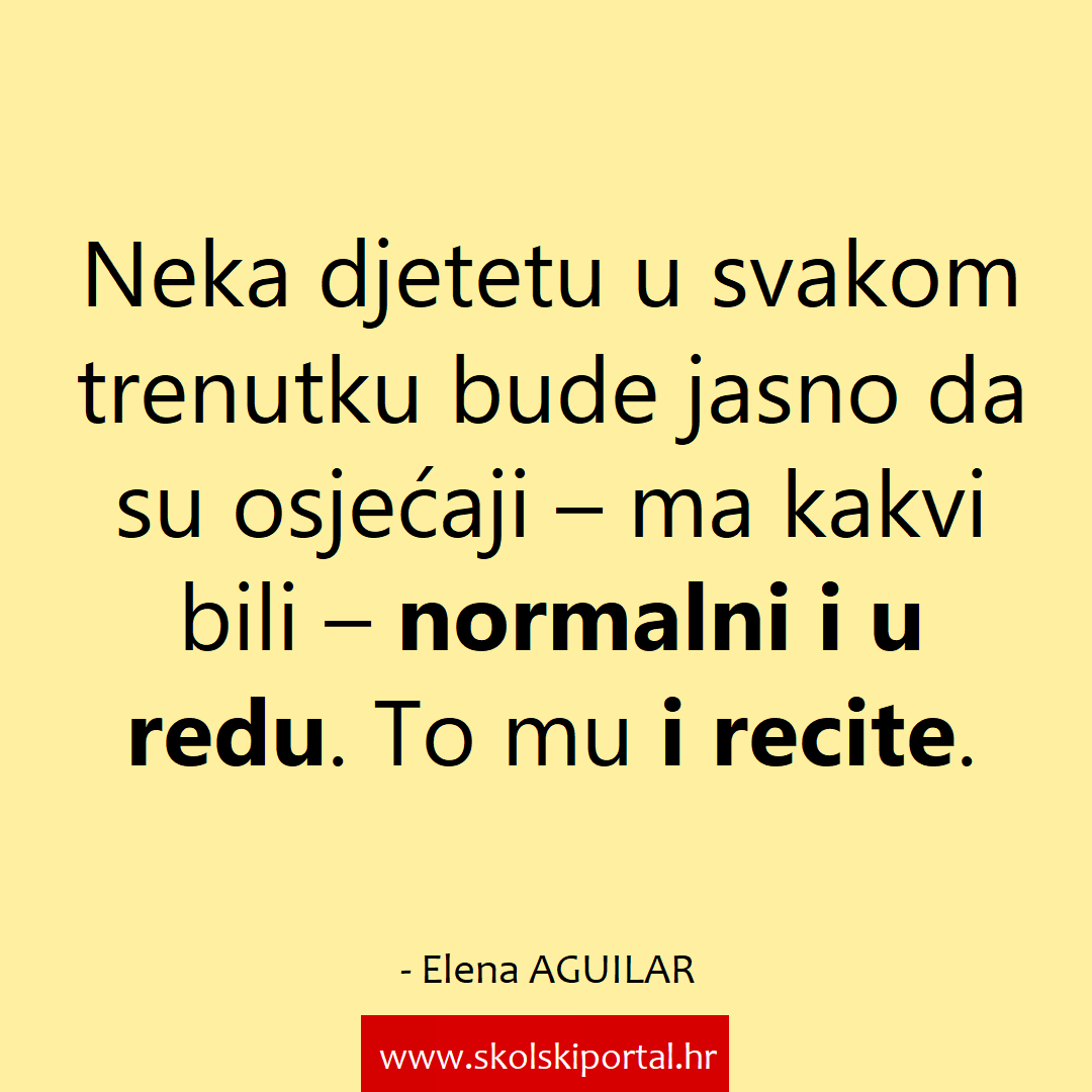 Bez obzira na to kako se dijete osjeća, to je normalno i u redu. Neka mu bude jasno da tako razmišljate. Osjećaji su u redu. To mu i recite.