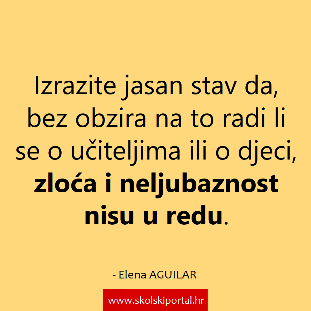 ■ NAPOMENA ■ napisala (uvod), izabrala i pripremila: Snježana Mostarkić  ■ autorica članka na engleskom: Elena Aguilar – savjetnica iz Oaklanda u Kaliforniji, autorica knjiga The Art of Caoching, The Art of Caoching Team i dr. ■ tekst je pri prijevodu mjestimice uređen i prilagođen, a poveznica na izvornik nalazi se na kraju ove napomene ■ SAD: Edutopia – portal namijenjen obrazovnim temama ■ izvornik: www.edutopia.org  ■