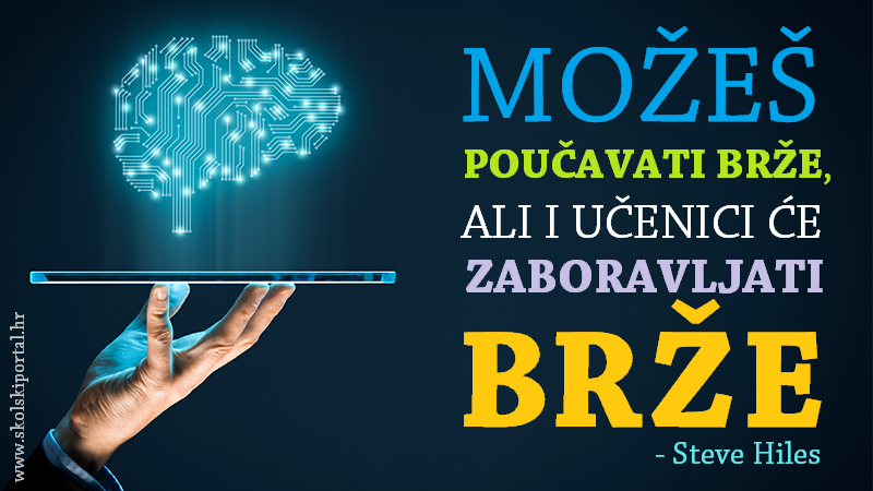 Školama je uobičajeno nastojanje da utrpaju što više toga u što kraćem vremenu. Možeš poučavati brže, ali i učenici će zaboravljati brže.