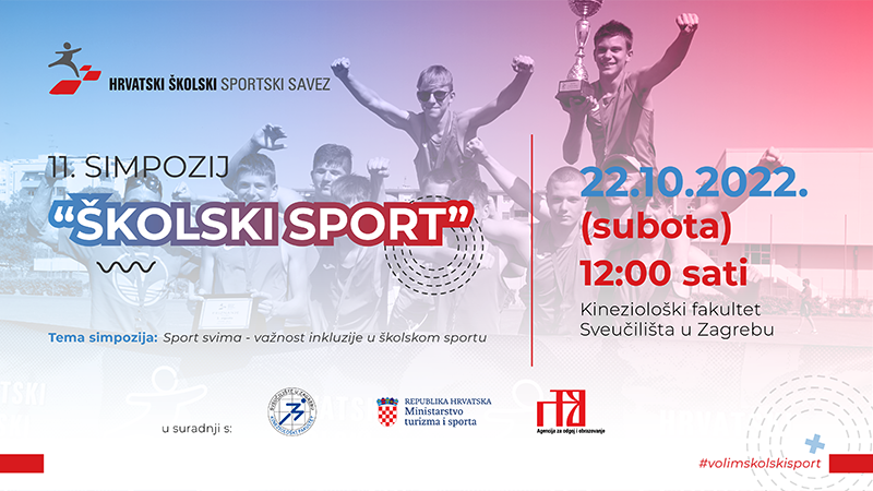 Pozivamo sve zainteresirane kineziologe, učitelje i nastavnike da se na platformi AZOO-a prijave za sudjelovanje na 11. Simpoziju „Školski sport“ koji se održava 22. listopada 2022. godine.