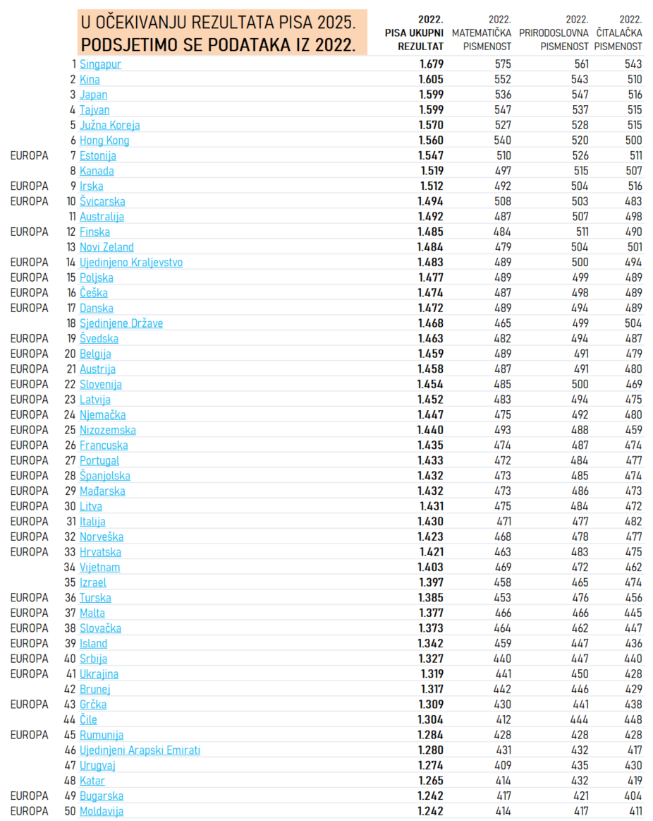 [prema posljednjem PISA testiranju 2022.]