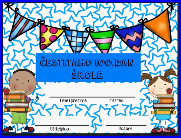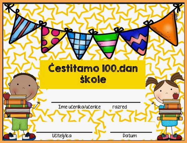 Da svi što zanimljivije proslavimo 100. dan, da se ori pjesma iz svake učionice, donosimo vam neke od materijala koje možete preuzeti i koristiti u svome razredu.