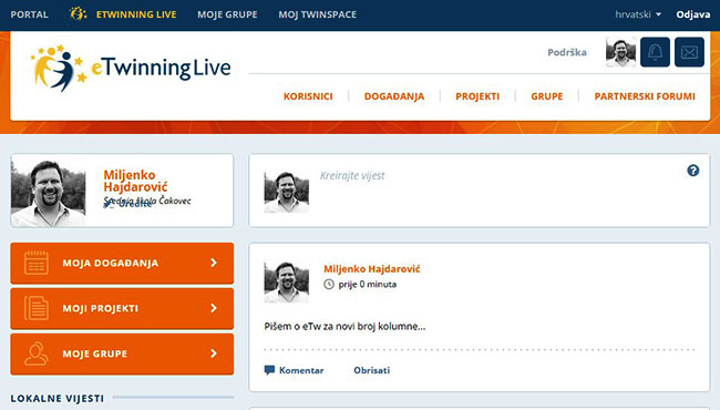Registrirati se možete prateći upute na naslovnici. Uza svoje osnovne podatke prilikom registracije upisujete osnovne podatke o ustanovi u kojoj radite, koja su područja vašeg interesa te dobne skupine učenika s kojima radite. Poslije uspješne registracije prijavljujete se na eTwinning live portal na kojem objavljujete statuse poput onih na društvenim mrežama, ali i tražite otvorene projekte ili pokrećete vlastiti. U tražilici tražite svoje online blizance po interesima i područjima rada.