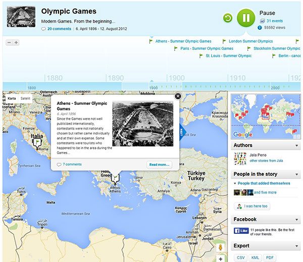 Isplati se pogledati još i mogućnosti aplikacije MyHistro. Riječ je o malo složenijoj aplikaciji koja koristi lentu vremena uz istodobno korištenje zemljovida. Za korisnike Edmoda vrijedi napomenuti da imaju posebnu aplikaciju koja se povezuje na vaš račun u Edmodu. Projekt je opsežan i vrijedi ga istražiti detaljnije (već u sljedećem nastavku). Primjer: