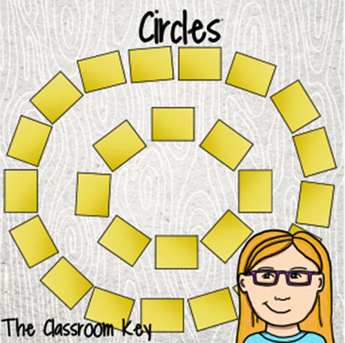 Također sam otkrila da je pametno odabrati nekoliko rasporeda koji vam se sviđaju i naučiti učenike kako da se brzo kreću između različitih rasporeda kada aktivnosti to zahtijevaju. Volim imati raspored stolova za grupnu lekciju, raspored stolova za grupni rad i raspored stolova za testiranje.