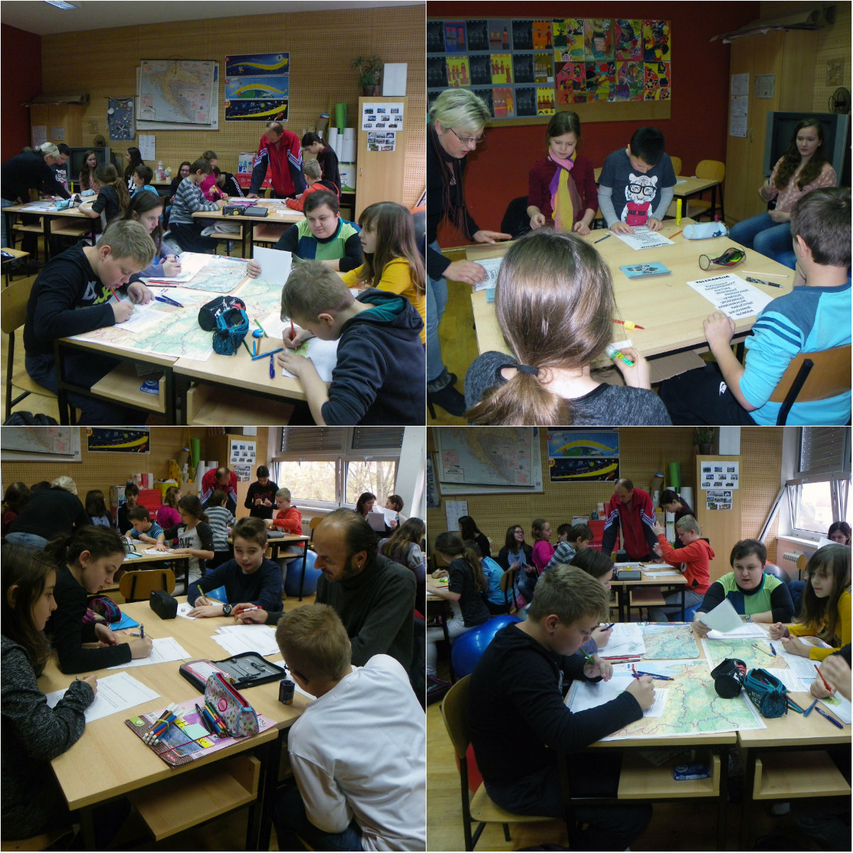 Zadatak u prvoj grupi bio je iz sadržaja obrađenog gradiva iz prirode i društva – dobili su zadatke da ucrtavaju i označavaju na slijepom zemljovidu, a uz pomoć zemljovida RH, naučeno o nizinskom i gorskom kraju RH. Zadatak u drugoj grupi bio je iz hrvatskog jezika, svrstati zadane glagole u različitim glagolskim vremenima u za to predviđenu tablicu – lijepljenjem.Treća grupa rješavala je problemske zadatke iz matematike, a četvrta grupa radila je sadržaje građanskog odgoja putem introspekcijskog listića naziva ”Tko sam ja”, a zatim je trebalo razgovorom i preslagavanjem zadanih riječi složiti riječ „tolerancija“ te objasniti samo značenje te riječi kao i samu važnost tolerancije. Cilj rada u grupama nije bio završiti sve zadane zadatke već međusobno komunicirati i zajednički pronalaziti rješenja zadanih zadataka.