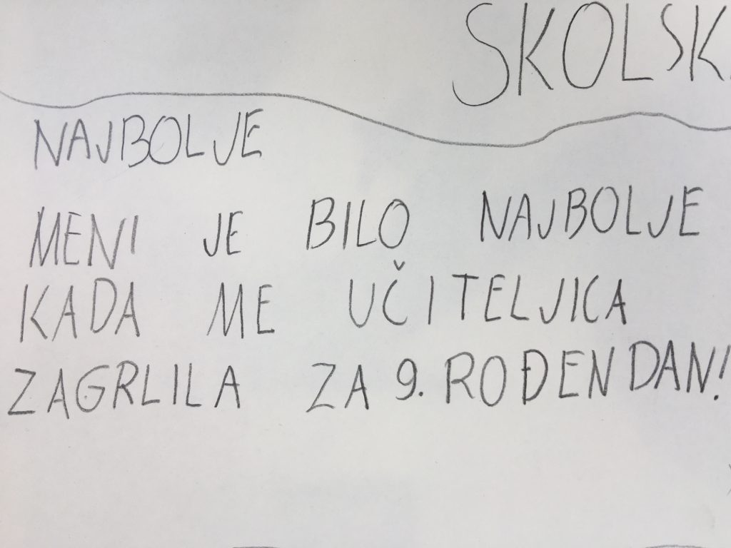 Zagrljaj ne košta ništa i obično se dogodi spontano, no nikada nisam ni pomislila da nekom djetetu toliko znači. Ne znam kako nam se piše u sljedećoj školskoj godini, no svakako ćemo se barem malo više grliti.