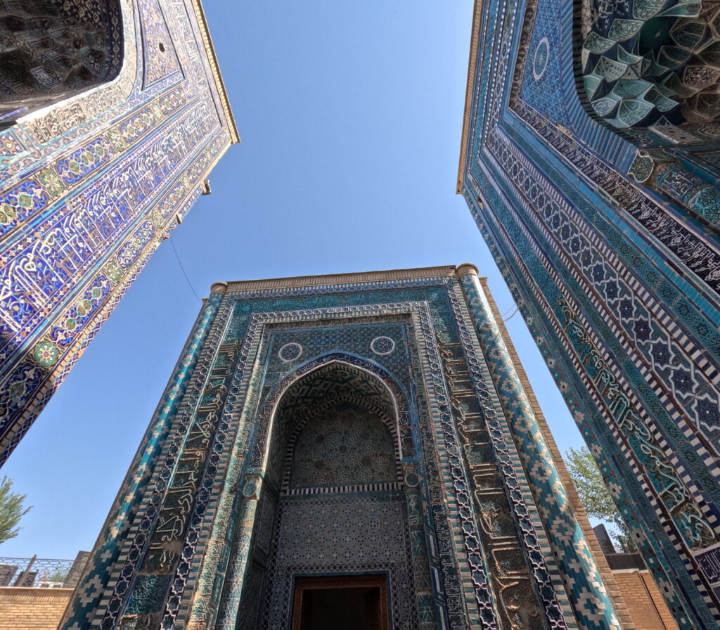 Započeli smo svoj dan posjetom nevjerojatnom mauzoleju Gur-e-Amir u Samarkandu. Čim stanete pred ovu impozantnu građevinu, zaslijepi vas divovska plava kupola blistajući na suncu poput bajkovitog safira. Mauzolej je posljednje počivalište Timura, zajedno s dvama sinovima i dvama unucima, uključujući i Ulugbeka. Prave su kripte smještene ispod, u komorama. Sovjetski antropolog je 1941. godine otvorio kripte i potvrdio da je Timur bio visok i šepav na desnu nogu i ruku zbog ozljeda koje je pretrpio s 25 godina. Također, otkrio je da je Ulugbek umro od obezglavljenja. Postoji omiljena anegdota turističkih vodiča koja kaže da je na Timurovom grobu pronađen natpis koji upozorava da će svatko, tko ga otvori, biti poražen od neprijatelja strašnijeg od njega. Sljedećeg dana, 22. lipnja, Hitler je napao Sovjetski Savez što je prema njihovu vjerovanju potkrijepilo tu priču.
