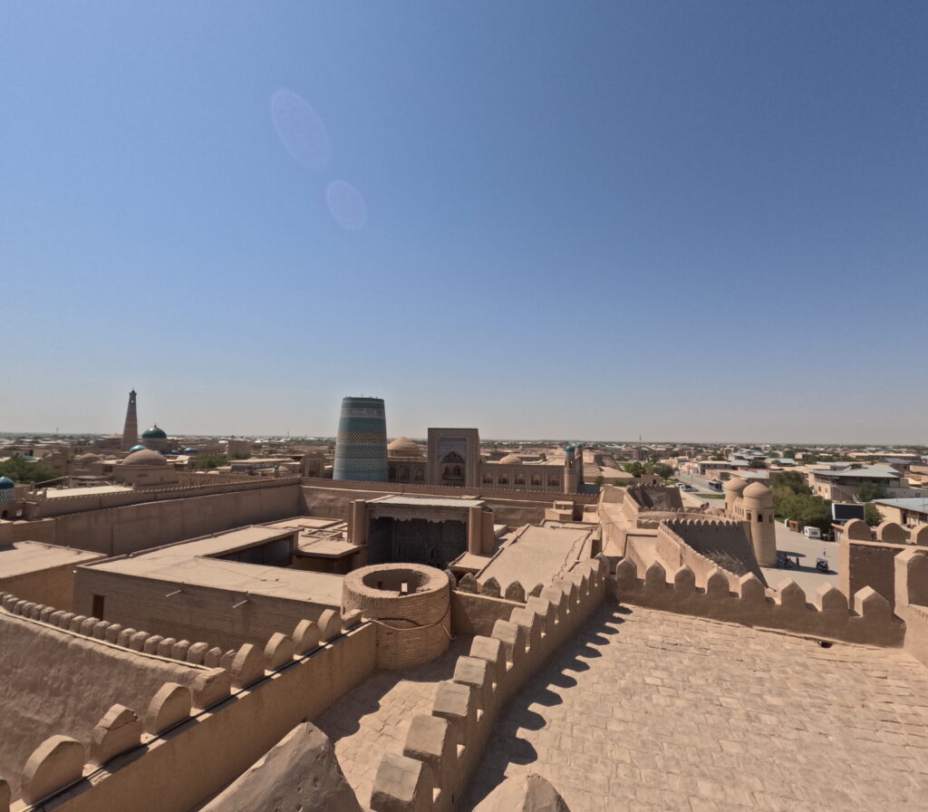 Nakon Bukhare krenuli smo autom prema Khivi ili kako se lokalno piše – Xivi. Putovanje od oko sedam sati s pauzama vodilo nas je preko izuzetno zanimljivog mosta, preko rijeke Amu Darje. Taj most, ujedno i željeznički, služi i kao prolaz za vlakove te se automobili propuštaju naizmjenično, najprije u jednom pa u drugom smjeru, kad nema vlakova. Khiva se smjestila u regiji Xorazm i predstavlja jedan od najbolje očuvanih povijesnih gradova duž Svilene ceste. Grad datira još iz 6. stoljeća, bio je ključan centar trgovine i kulture na ovoj važnoj ruti. UNESCO je 1990. godine proglasio staru gradsku jezgru, poznatu kao Ichan Kala, svjetskom baštinom.