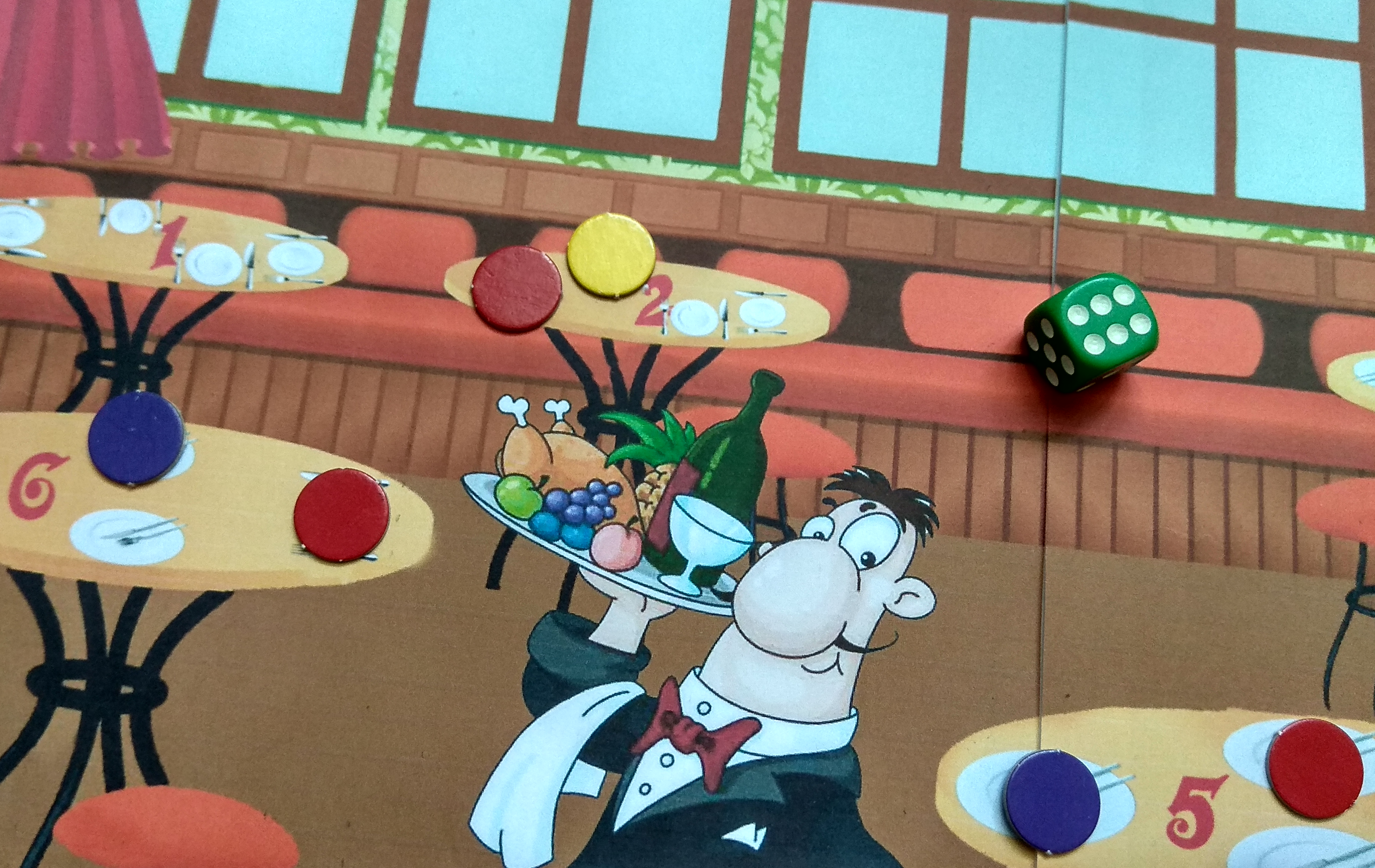 Igrač koji započinje igru baca kockicu koja određuje koji stol treba poslužiti. Na svakom su stolu četiri postavljena tanjura (četiri pitanja).