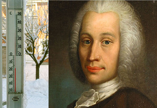 ■ Svakodnevno čujemo u prognozi podatke o temperaturama izraženima u Celzijevim stupnjevima (jedan Celzijev stupanj jednak je jednoj stotini razmaka između temperature ledišta i vrelišta vode). Švedski fizičar i astronom Anders Celsius (1701. – 1744.) zauzimao se za to da se uvede jedinstvena temperaturna skala. Godine 1742. predložio je da se kao osnovne točke za mjerenje temperature na živinom termometru odaberu ledište i vrelište vode pri tlaku od 760 mm stupca žive. Po toj skali voda je trebala ključati na 0 stupnjeva, a zalediti se pri temperaturi 100 stupnjeva. Ali, srećom, Carl von Linné ( 1707. – 1778.), prvi predsjednik švedske Akademije znanosti, rekao je da bi bilo bolje okrenuti tu skalu. To je i prihvaćeno, a ime skale je ipak vezano uz Celsiusa, a ne uz Linnéa. Dakle, od 1743. godine ledište vode označava se nulom, a vrelište sa 100 stupnjeva Celzijevih.
