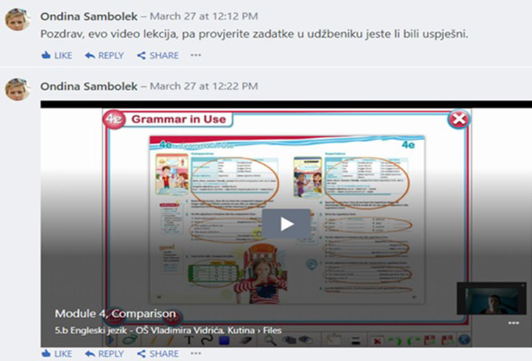 Roditelji i učitelji su se dodatno povezali. Njihova komunikacija je svakodnevna što u klasičnoj nastavi nije bio slučaj.