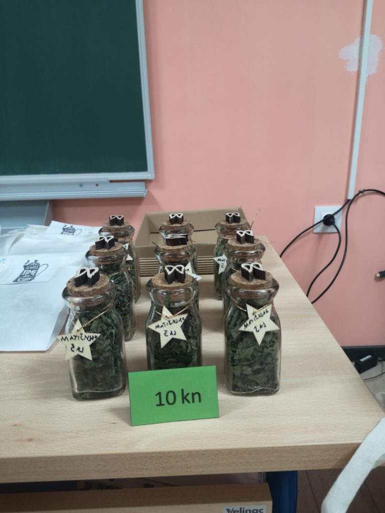 Od različitog začinskog i ljekovitog bilja uzgojenog na spiralnoj gredici PO Dubranec, koje su učenici zajedno ubrali, osušili i zapakirali u različite staklene bočice i papirnate vrećice, pripremljena je izložba za školski prodajni sajam.