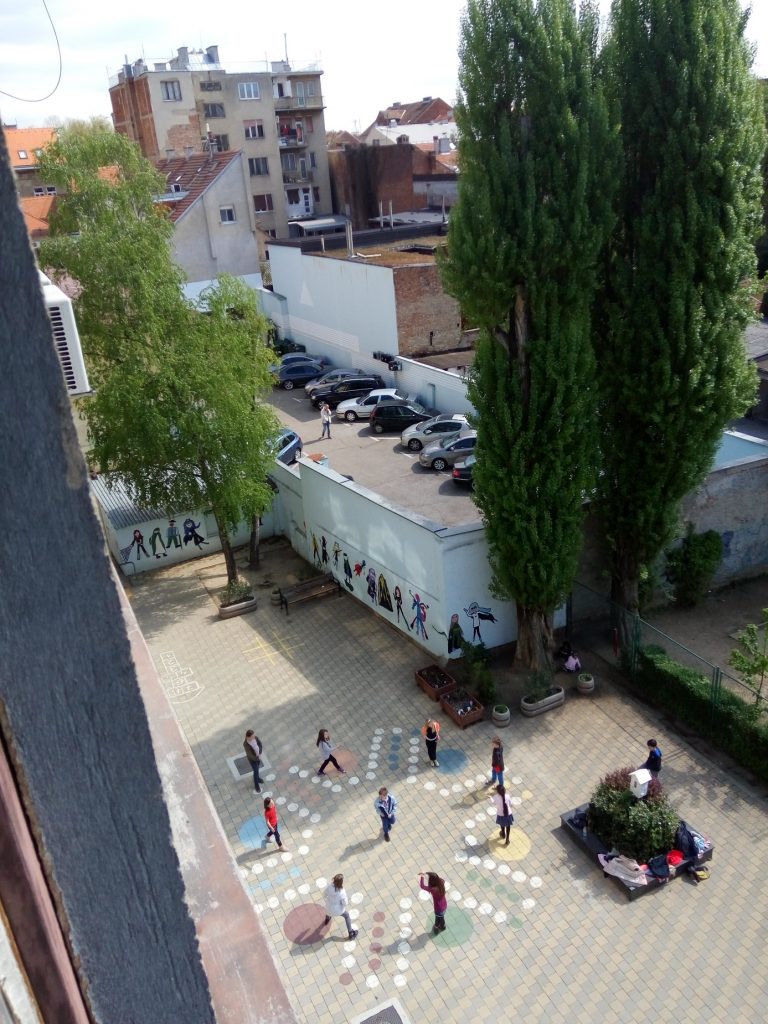 Učenici 3.b s učiteljicom Sanelom Skevin pronašli su investitore koji su sazidali zidiće, napravili drvene sanduke, složili klupice od hrastovine i dovezli kamion zemlje za njihov ekovrt usred zagrebačkog asfalta. Učenici su zatim u vrtu zasijali različito povrće i začinsko bilje te posadili jagode.
