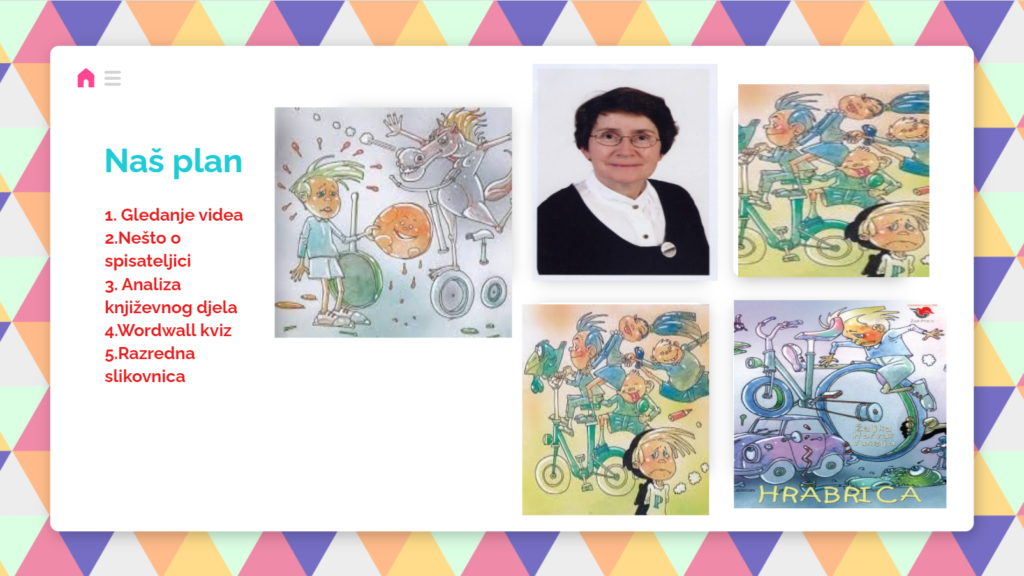 Za obradu lektire rabili su alat Genially, a zadatci su učenicima podijeljeni s pomoću pet panela. Svaki je učenik dobio zadatak oslikati jedan prizor iz priče i poslati fotografiju svojeg rada. S obzirom na to da su učenici kreativni i željni sudjelovati u projektima, vrijedno su prionuli na posao. Svi su radovi objedinjeni s pomoću alata Flipsnack u prvu razrednu slikovnicu.