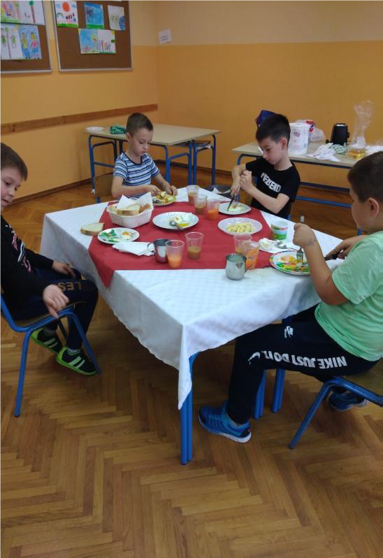 Riječ je o projektu kojim smo promicali zdrav život na selu i zdravu prehranu. Učenici 2. a razreda osmislili su, skuhali i konzumirali zdrav doručak. To je bila kombinacija standardnog doručka jaje na oko, sir, mlijeko i kruh sa suvremenim zdravim napitkom smoothiejem. Učenici su samostalno pripremili objed, postavili stol i uljudno, vodeći brigu o bontonu za stolom, konzumirali.