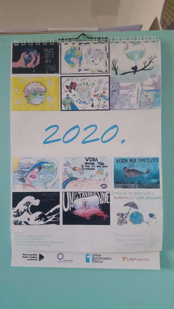 Cilj projekta bio je izraditi školski ekološki kalendar koristeći se učeničkim individualnim plakatima na temu zaštite okoliša, posebno vode s vizualnom i tekstualnom porukom. Izrada kalendara omogućila je međupredmetnu suradnju predmeta biologija, zaštita okoliša, grafička tehnologija, grafička priprema i dorada. Osim razvoja ekološke svijesti i prihvaćanja postulata održivog razvoja, izrađeni kalendari nudili su se kao proizvod u sklopu učeničke zadruge Slog te darovali poslovnim suradnicima ili partnerima tijekom adventa.