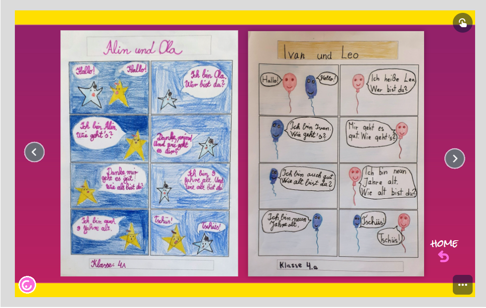 Učenici 4. razreda oblikovali su i pisali kratke stripove na njemačkom jeziku na temu Susreti i upoznavanje na praznom predlošku dobivenom od učiteljice.