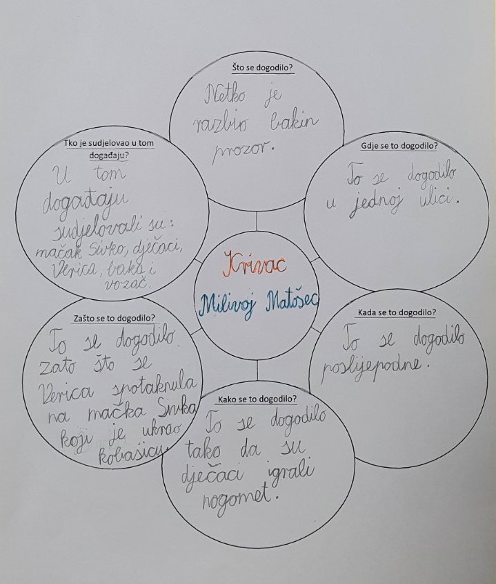 Još jedan popularan standardni grafički organizator jest i Karta događaja, koja je nastala pri interpretaciji teksta Krivac Milivoja Matošeca na satu Hrvatskog jezika u 3. razredu osnovne škole. Taj organizator omogućuje djetetu da riječima i crtežima strukturirano opiše događaj u priči, što mu olakšava razumijevanje, pamćenje i prepričavanje tog događaja.