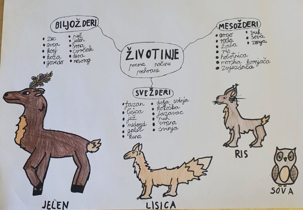 Na fotografijjama je vidljiva Mentalna mapa nastala na satu Prirode i društva, također u 3. razredu, kojom je prikazana podjela životinja prema načinu prehrane.