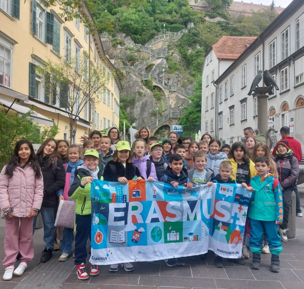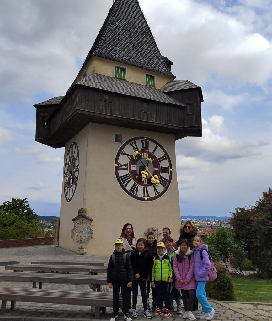 Moja kolegica Aurika Matković, učiteljica, i ja, zajedno s našim učenicima 3. a razreda (Ema Erlić, Neva Ključarić, Gabrijel Bulić i Andrija Bušić) te učenicima 3. i 4. razreda PŠ Juricani OŠ Marije i Line, Umag (Isabel Jurjak, Noah Martinčić, Iva Remaj i Matija Rodin) otputovale smo na mobilnost u Graz, u Austriju.