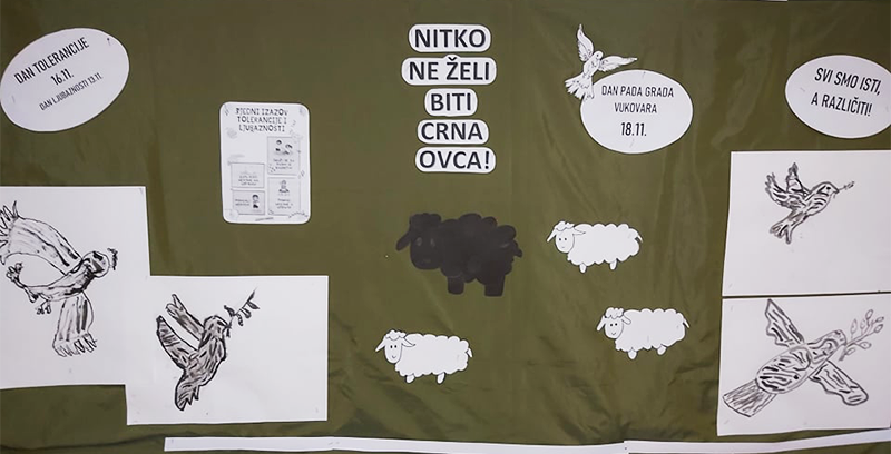 Na satu likovne kulture crtali smo crtama golubicu kao znak mira te uredili pano za Dan tolerancije.