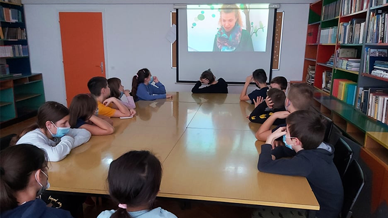 Posjetili smo i knjižnicu. U suradnji s našom knjižničarkom Tihanom upoznali smo Priču o zelenom psu. Nakon interpretacije, knjižničarka je održala kratku radionicu u kojoj su učenici isticali tuđe vještine i hvalili ih. Razvijali su osobnost, izricali osjećaje pri nasilju, ružnim riječima, netoleranciji te povezivali zelenog psa s osobnim iskustvima. Ponovno su izdvojili naš moto „Isti smo, a različiti”.