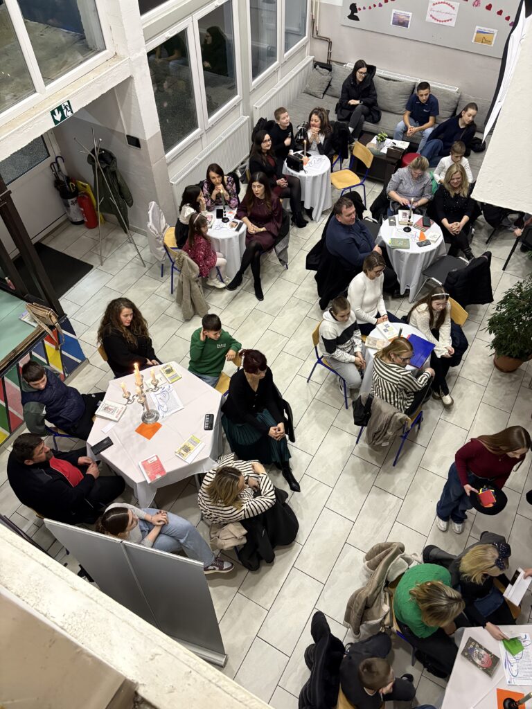 Ovogodišnji je program bio osmišljen kao susret generacija zajedničkim kazivanjem poezije učenika i članova njihovih obitelji. U intimnom ozračju školskog atrija, uređenog poput male pariške pozornice s pogledom na noćni grad, izmjenjivali su se dječji i odrasli glasovi.