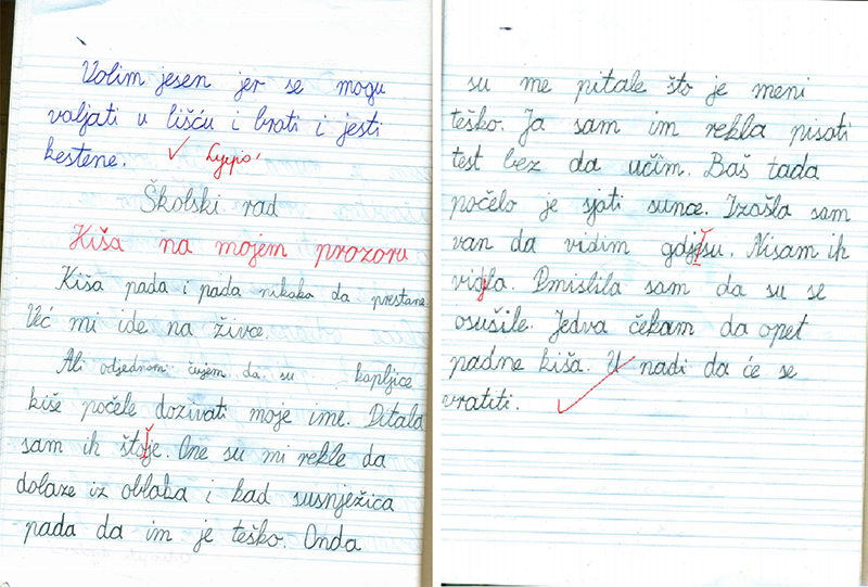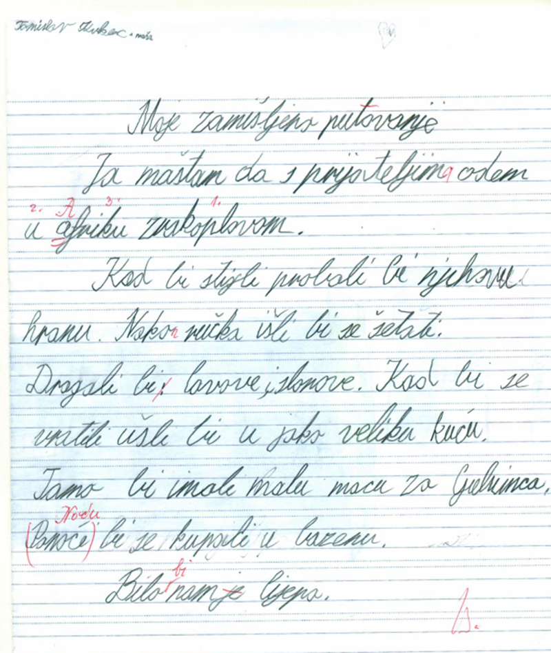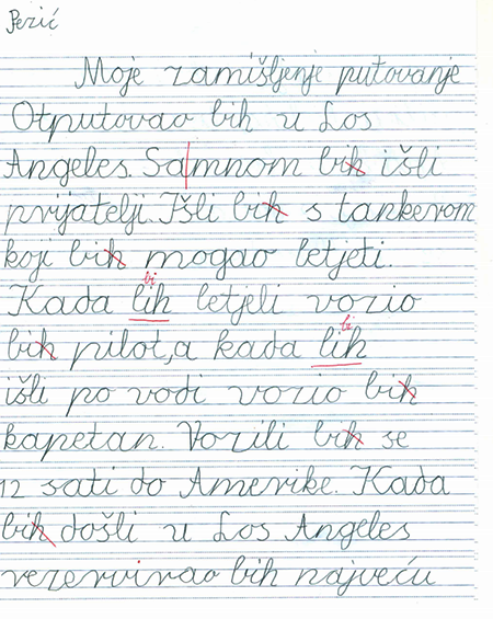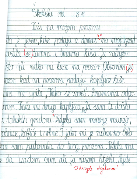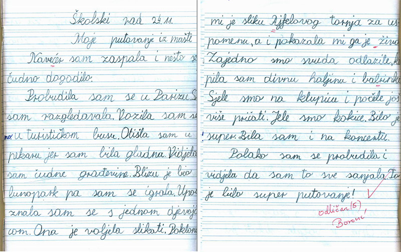 Učenici rado pišu o sadržajima vezanima za vlastiti doživljajni svijet. Treba ih navikavati da biraju pravilne jezične oblike.