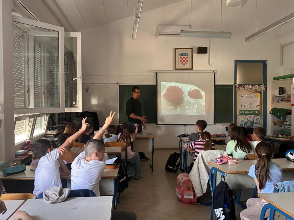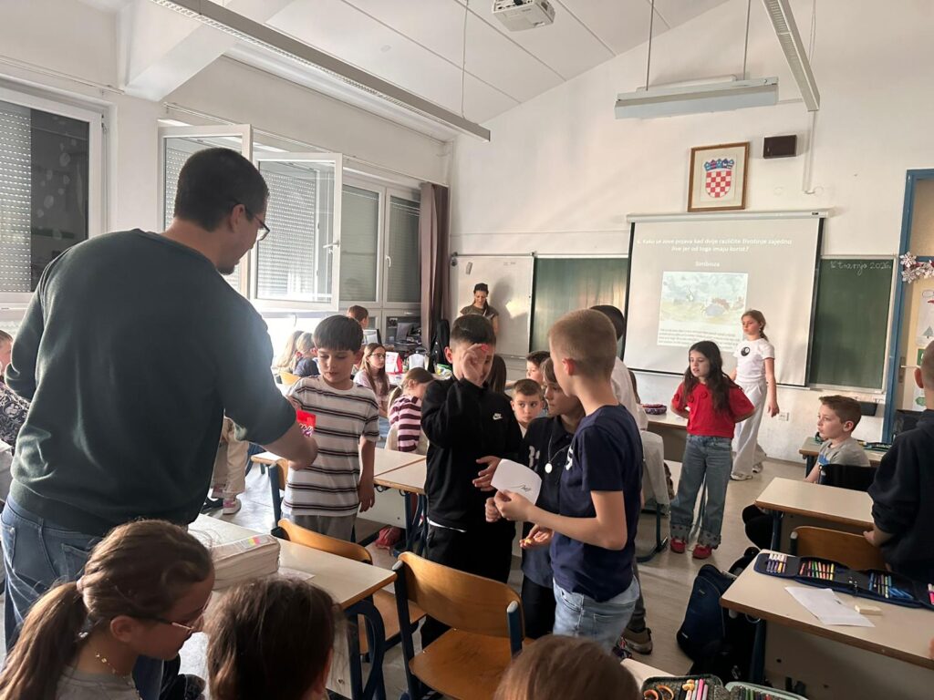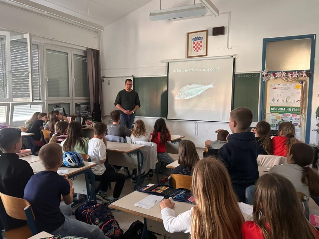 Nakon čitanja slikovnice uslijedio je iznimno živ i poticajan razgovor. Učenici su s velikim zanimanjem postavljali brojna pitanja o podvodnom svijetu – o životinjama koje tamo žive, njihovoj prehrani, kretanju i načinima zaštite od predatora. Gost je strpljivo i s oduševljenjem odgovarao na svako pitanje, dodatno produbljujući njihovu znatiželju i razumijevanje.
