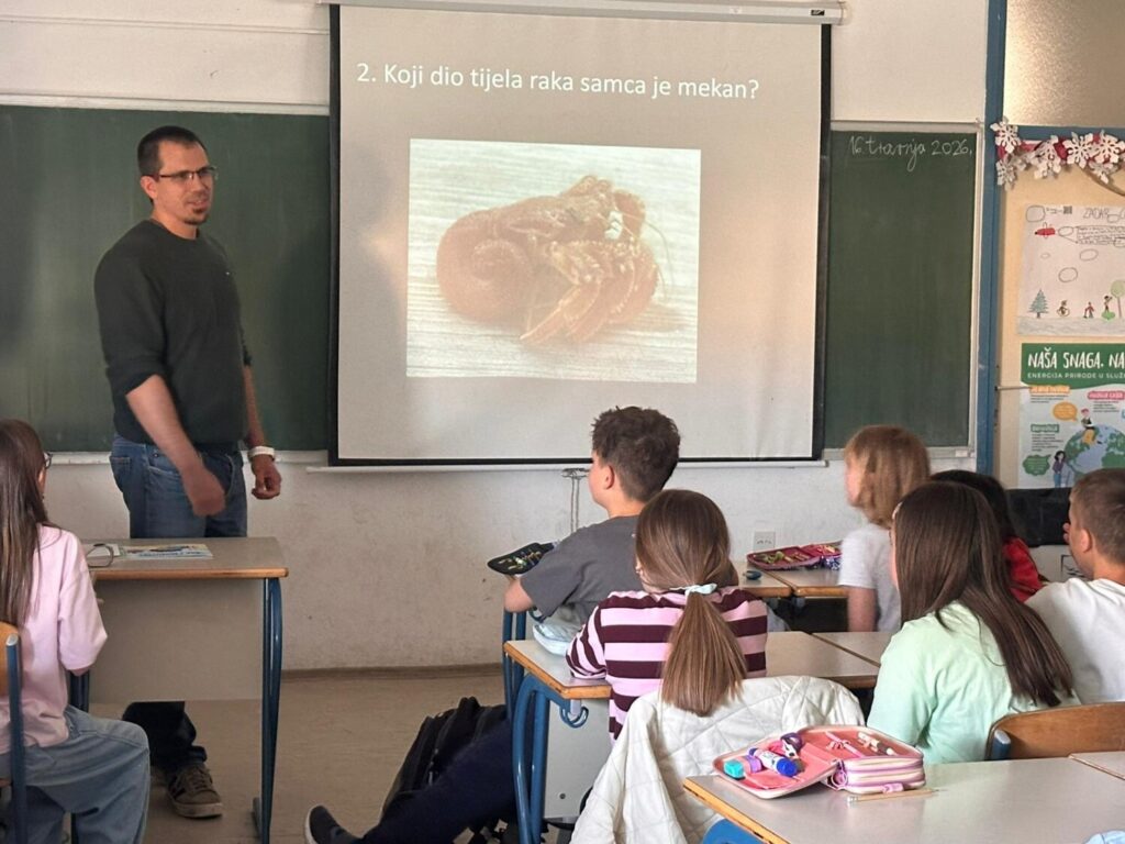 Razgovaralo se o suživotu živih bića, odnosno o odnosima od kojih obje vrste imaju koristi, poznatima kao simbioza. Poseban naglasak bio je na primjeru raka samca i moruzgve. Učenici su naučili kako rak omogućuje moruzgvi kretanje i pomaže joj u prehrani ostatcima svoje hrane, a moruzgva svojim žarnicama štiti raka od mogućih predatora. Taj slikovit i konkretan primjer pomogao je učenicima da na razumljiv i zanimljiv način shvate složene odnose u prirodi te važnost ravnoteže u ekosustavu.