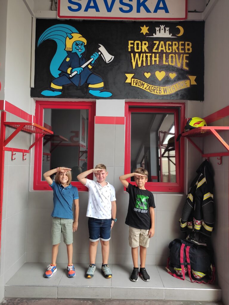 Posjetili smo vatrogasnu postrojbu u Savskoj, u Zagrebu. Vatrogasci su nam ispričali sve o svom zanimanju i pokazali svu opremu. Saznali smo da oni nisu zaduženi samo za gašenje požara, već pomažu u mnogim nevoljama, a posebno kad se radi o elementarnim nepogodama. Učenici su gasili zamišljeni požar, isprobavali opremu i vozili se u vatrogasnom vozilu. Vatrogasci su im pokazivali kako se spuštaju s kata kao i svoje trikove kako što brže odjenuti hlače i jaknu. Ispričali su djeci kako svaki dan trče i jačaju mišiće kako bi bili u što boljoj fizičkoj formi. Bili smo prisutni i kad se oglasila sirena za hitnu intervenciju. Vidjeli smo kako se vatrogasci brzo spremaju i jure na teren pomoći ljudima u nevolji.