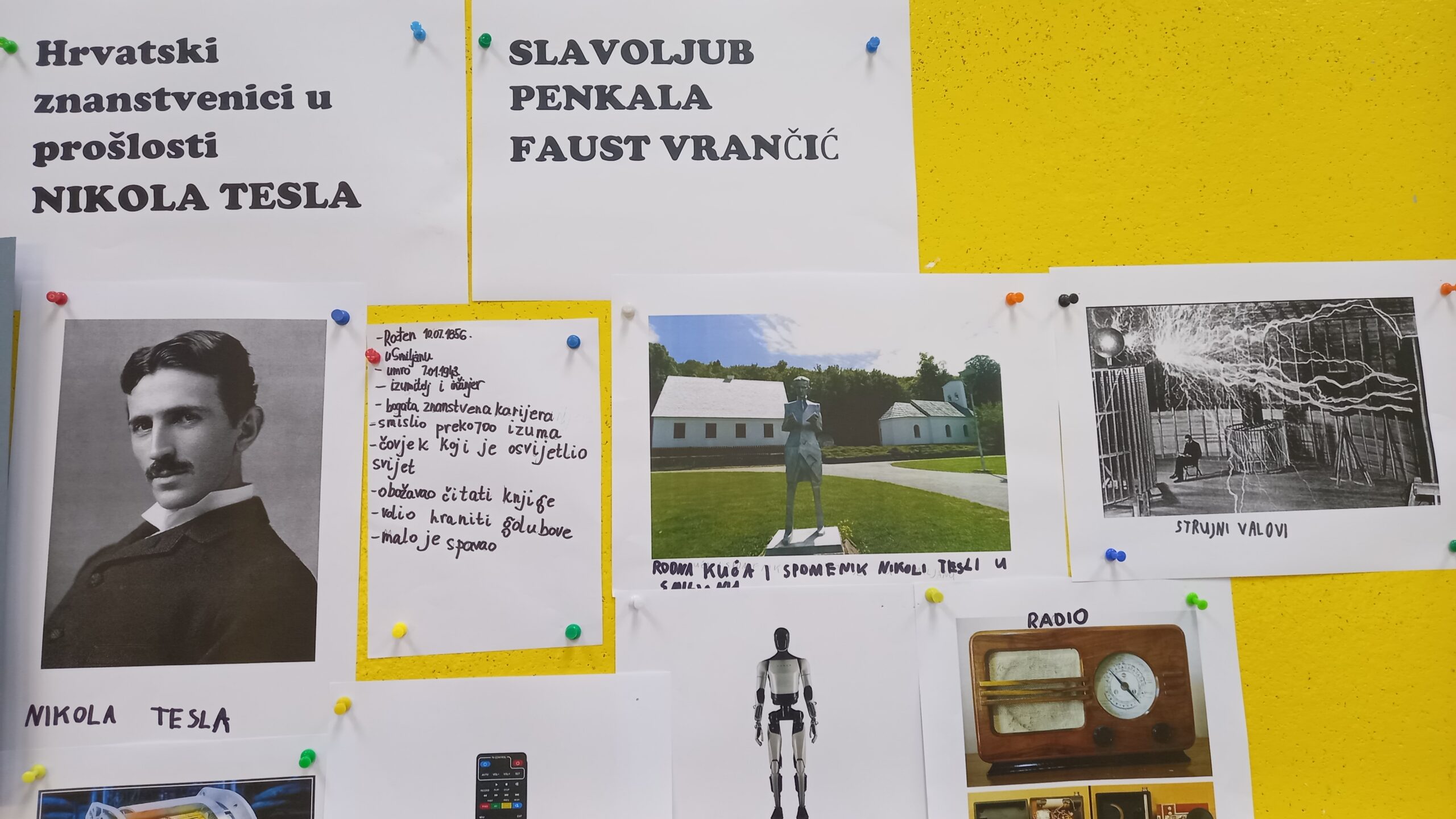 Učenici su na satovima informatike s nastavnicom Anom ŠTIGLER uza zanimljive i kreativne digitalne aktivnosti upoznali trojicu velikih hrvatskih izumitelja – Nikolu Teslu, Fausta Vrančića i Slavoljuba Eduarda Penkalu. Rad je bio organiziran kao mali digitalni projekt u kojem su učenici istraživali, stvarali i učili uz igru.