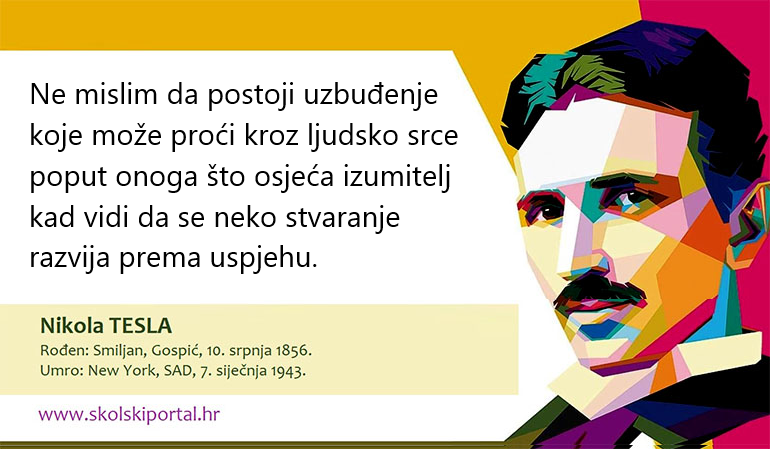 Nikola TESLA  hrvatski je i američki znanstvenik i izumitelj. Izumio je radiokomunikacije i daljinsko upravljanje, prve patente za proizvodnju i prijenos višefaznih izmjeničnih struja i njihovu primjenu na učinkovit pogon izmjeničnih elektromotora.
