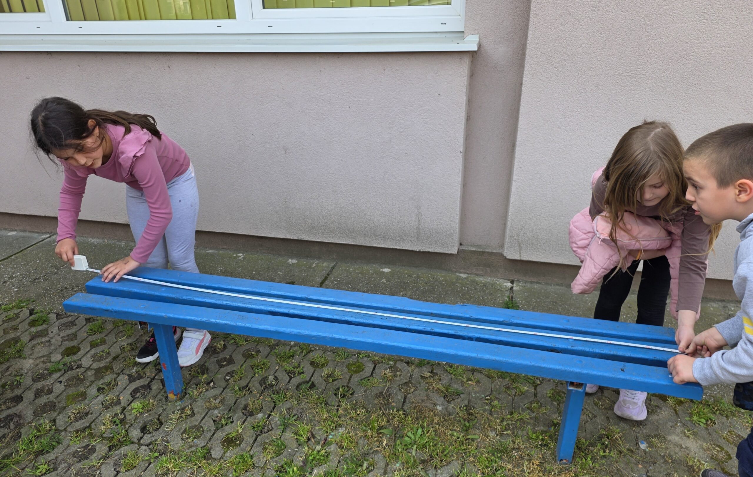 Učenici su izašli u školsko dvorište i mjerili zadane predmete. Mjerili su dužinu klupa, vrata škole i dijelova igrališta. Dio učenika preračunavao je dobivene mjere u različite jedinice, a napredni su učenici dodatno izračunavali koliko bi eura bilo potrebno za postavljanje ograde oko igrališta.