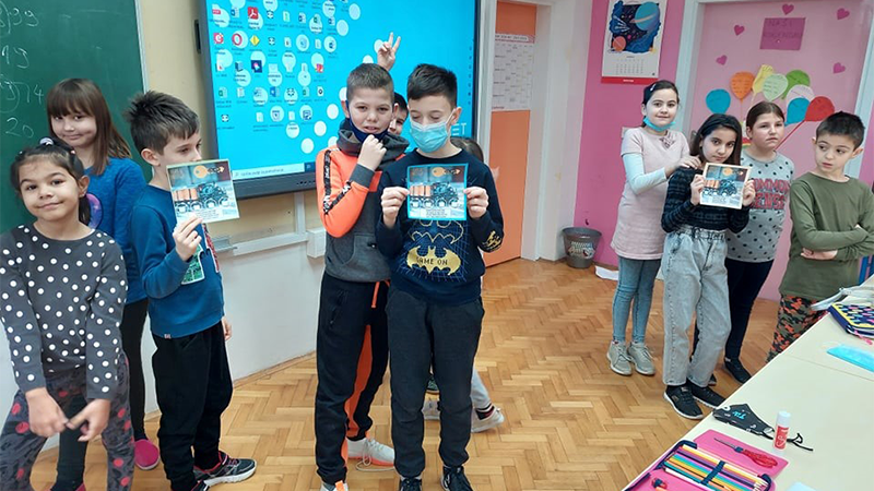 Radnju romana predstavili smo u Explosion booku. Na taj način vježbali smo pripovijedanje, razvijali govorne vještine. Našim uradcima vlaka ukrasili smo i pano. Prikazali smo ga tonskom modulacijom.