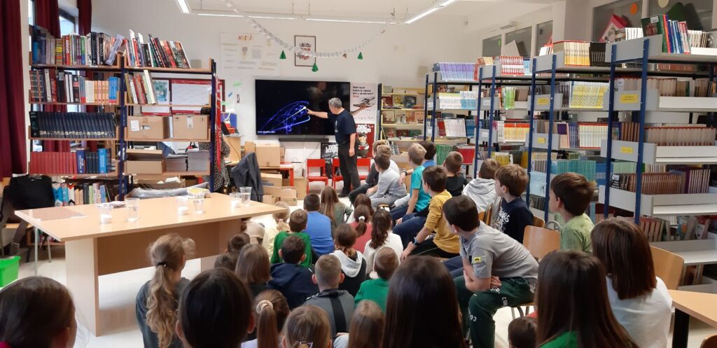 Na izmaku ovogodišnjeg Mjeseca hrvatske knjige, u suorganizaciji sa Školskom knjigom, knjižnica OŠ „Srdoči“ ove je godine ugostila Krešimira Čanića, zanimljivog promotora raznih vrsta znanosti i autora nekoliko slikovnica iz STEM područja.