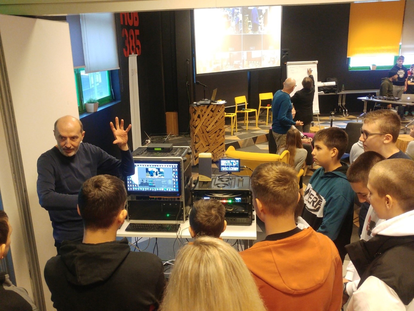 Ovaj potpuno drukčiji izvanučionički, međupredmetni dan školarcima iz Bisaga počeo je uvodnom prezentacijom Nenada Vakanjca iz udruge SVIMA upoznavanjem s poznatim medijskim profesionalcima iz Radija 808 te razgledom njihova radijskog studija, ali i razgledom coworking prostora HUB-a 385 u kojemu su ih ugostili, uz pojašnjenja o funkcioniranju ovakvog suvremenog poslovnog koncepta, pri čemu se djecu posebno dojmila Green Room, soba za sastanke i opuštanje kakvu su si poželjeli imati u školi.