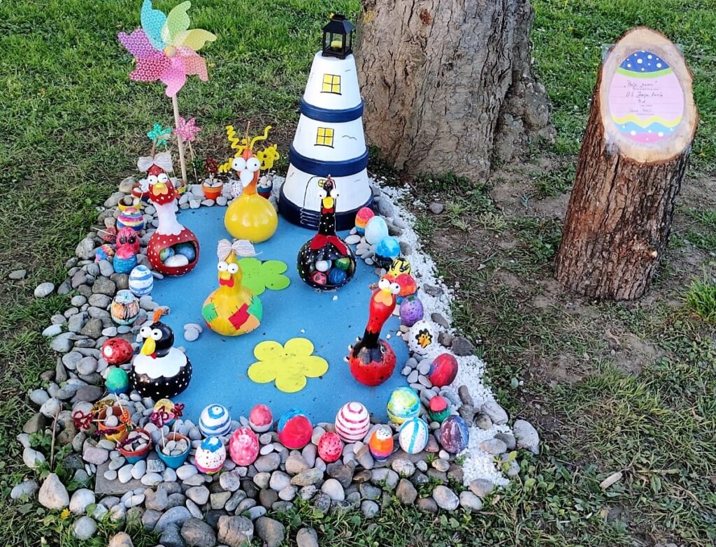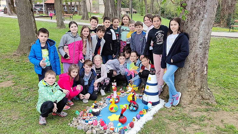 učenici 3. d razreda pod vodstvom učiteljice Ivane Matešić sa zanimljivom i kreativnom instalacijom Pačje jezero, koja je osvojila prvu nagradu.
