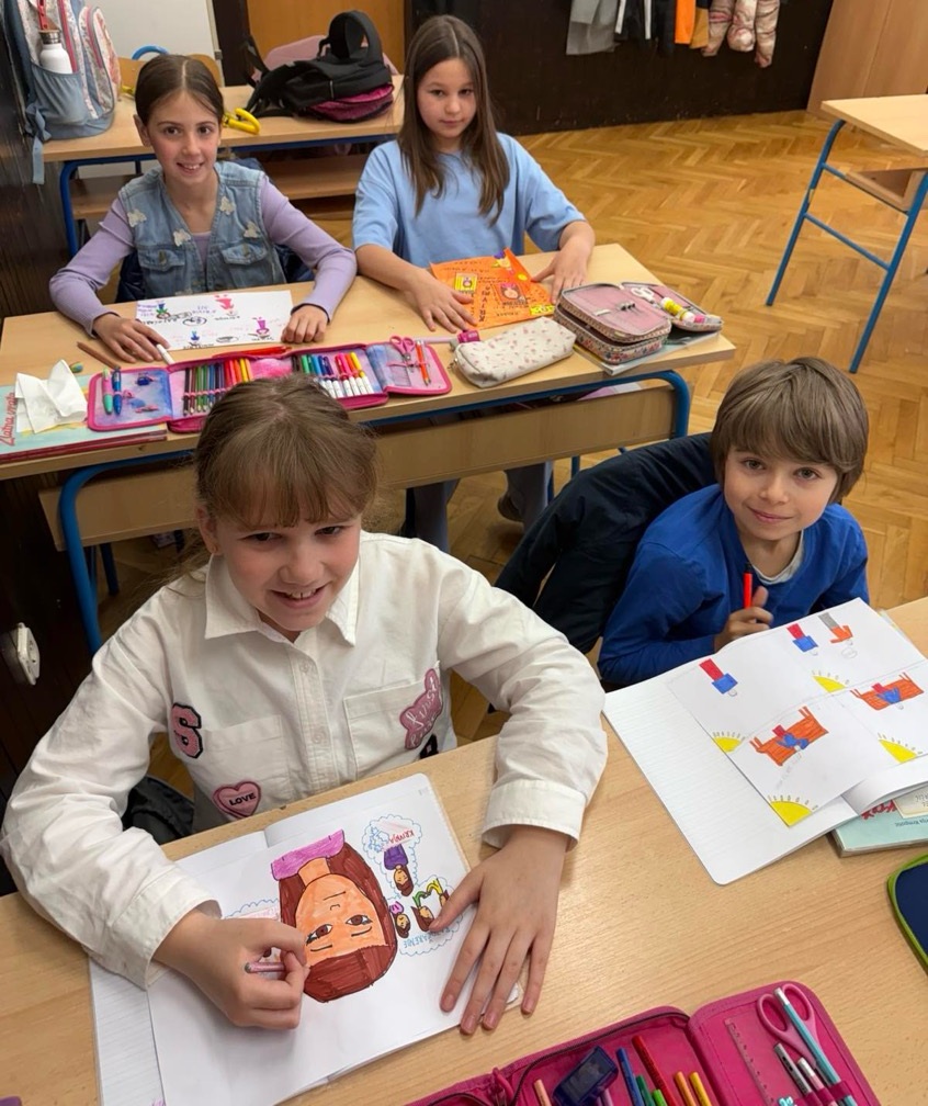 Učenici su s učiteljicom Majom na satu Hrvatskoga jezika pisali sastavke koji su kasnije uklopili u jednu zajedničku priču, njihovu slikovnicu.