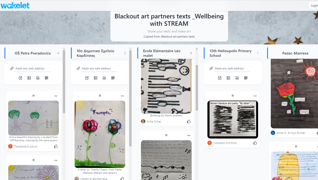 Kako bi obilježili Dan europskih autora, učenici su spojili kreativnost s pismenošću blackout artom te su sudjelovali u nekoliko aktivnosti čitanja. Prevodili su poeziju, koju su odabrale partnerske škole, pretvarajući stranice teksta u umjetničke slike. Ova je aktivnost spojila čitanje s umjetničkim istraživanjem pomažući učenicima kreativno izrazito svoje emocije i misli.