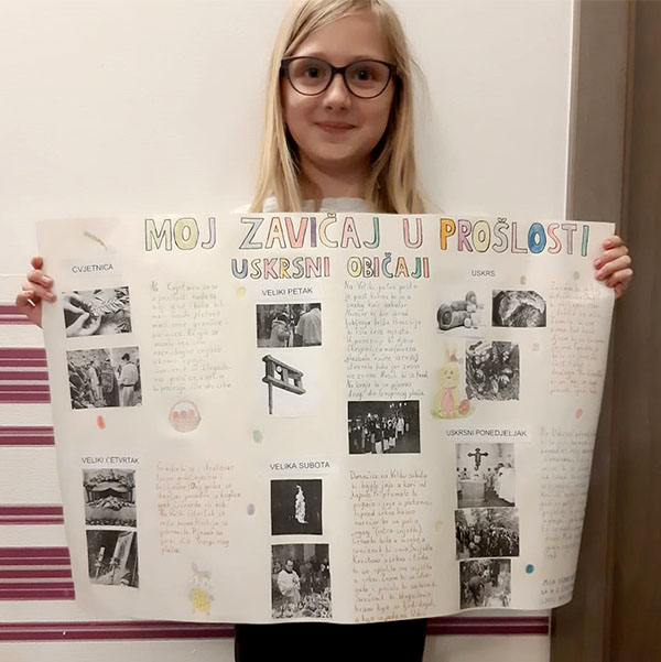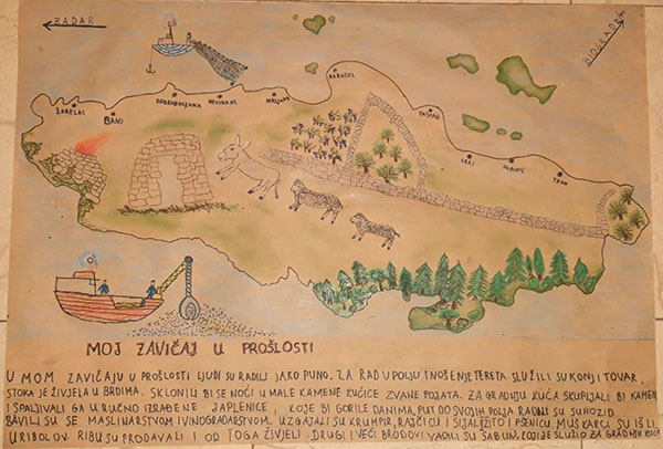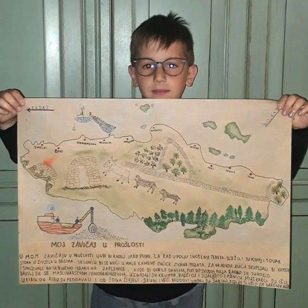 Duje LUKAČIĆ i Pave STAGLIČIĆ ✿ jasno i originalno su raspravlja o utjecaju događaja, osoba i promjena na sadašnji i budući život čovjeka. Prikazali su životinje, događaje, osobe, predmete i promjene u zavičaju tijekom prošlosti i sadašnjosti te zamišljali kako će izgledati u budućnosti služeći se svojim crtežom i slikama. Objasnili su važnost različitih zanimanja i djelatnosti u prošlosti svog zavičaju te opisali važnost rada i povezanost sa zaradom i zadovoljavanjem osnovnih životnih potreba.