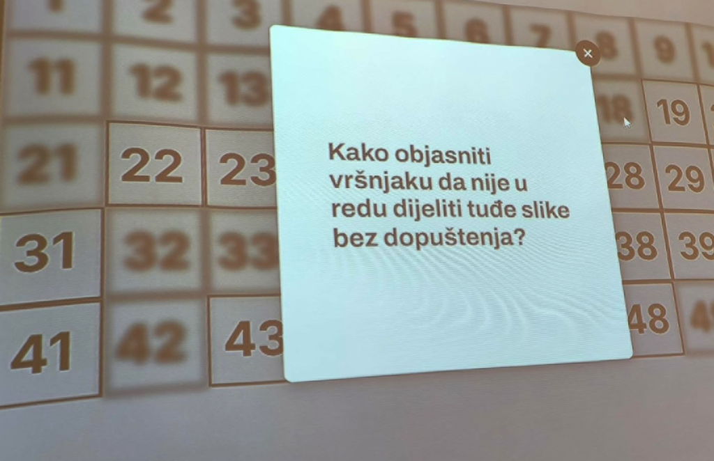 Napredovanje po polju bilo je moguće tek nakon točno odgovorenih pitanja vezanih uz sigurnost na internetu. Kako bi igra bila izazovnija i zanimljivija, organizatorice su uvele i tzv. „crne rupe“ koje su usporavale timove i dodatno poticale na pažnju, koncentraciju i timsku suradnju. Naši su školarci s velikim zanimanjem sudjelovali u igri pokazujući stečena znanja i sportski duh.