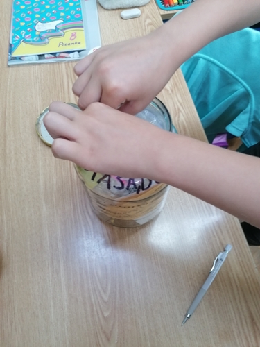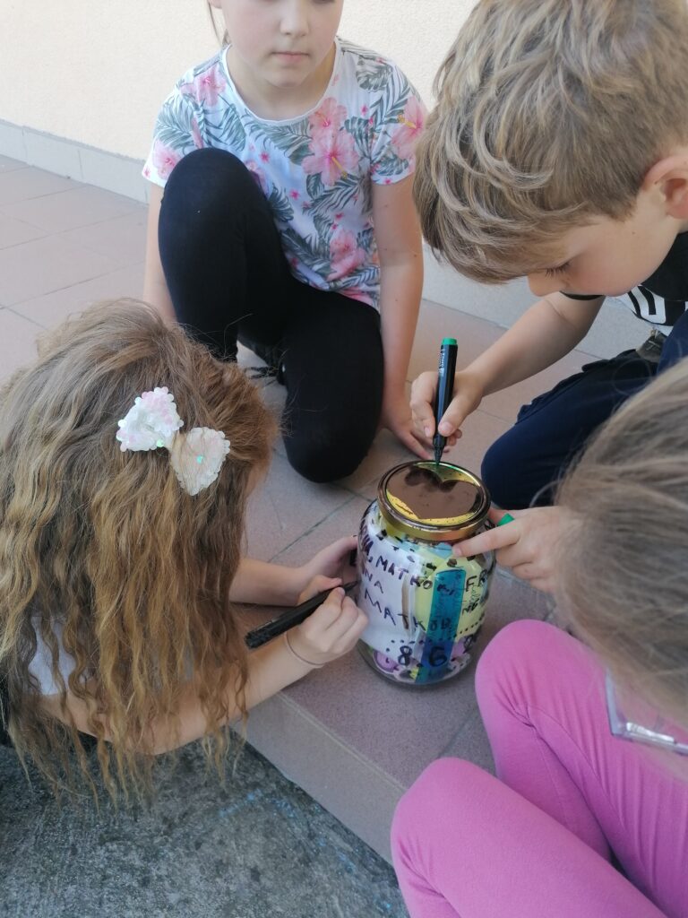 Odluku koje će predmete staviti u vremensku kapsulu (staklenku), prepustila sam učenicima. Većina ih se brzo odlučila, ali bilo je i onih koji su dugo promišljali. Našlo se tu svega: maski, gumica, olovaka, ravnala, fotografija, omiljenih karata, gumica za kosu, šiljila…
