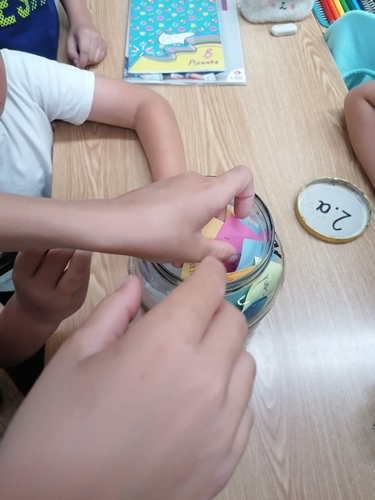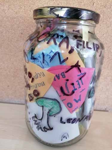 U razredu su učenici imali zadatak napisati što žele da im se ostvari u budućnosti pa smo u staklenku stavili i te radove.