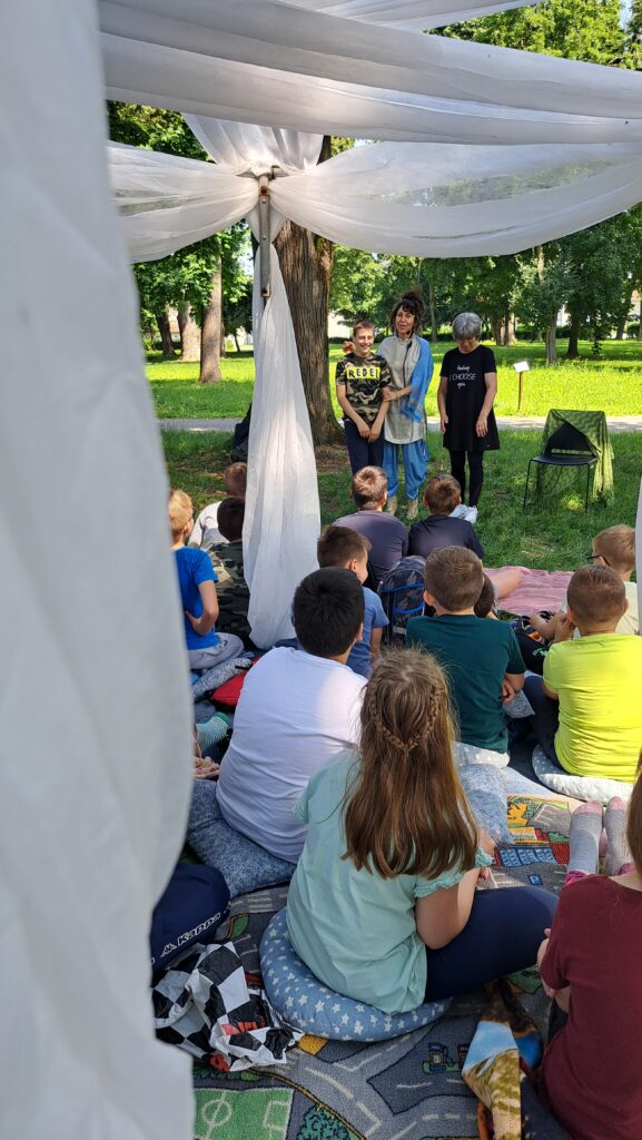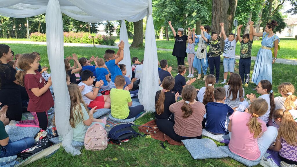 Posljednji dan „Projektnog tjedna“, u petak 16.lipnja, učenici razredne nastave proveli su u hladovini suhopoljskog parka smješteni ispod bijelog baldehina na mekanim jastucima. Volonteri suhopoljske udruge KrEdA, koji su često domaćini suhopoljskim učenicima u sklopu radionica u Općinskoj knjižnici, potrudili su se stvoriti poseban ugođaj za ovako bajkovit dan.