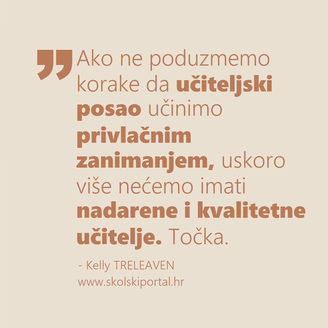Ne znam na koji bih način svoju misao izgovorila jasnije od ovoga što upravo pišem: Ne poduzmemo li korake da učiteljski posao učinimo privlačnim zanimanjem, uskoro više nećemo imati nadarene i kvalitetne učitelje. Točka.