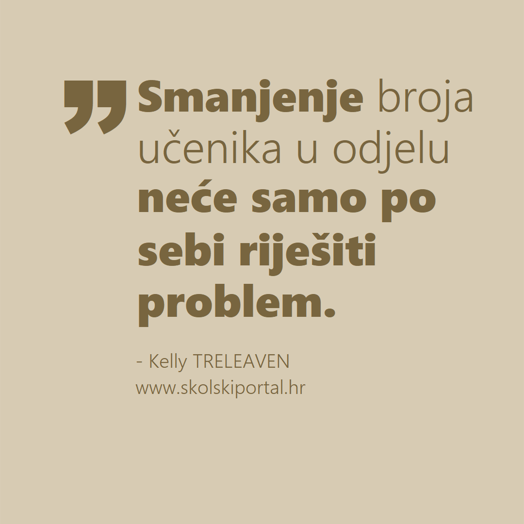Međutim, bitno je pritom naglasiti da smanjenje broja učenika u odjelu neće samo po sebi riješiti problem. Ako ne poduzmemo korake da učiteljski posao učinimo privlačnim, poučavatelji koji ulaze u takve malobrojne odjele neće imati iskustvo koje im je potrebno.